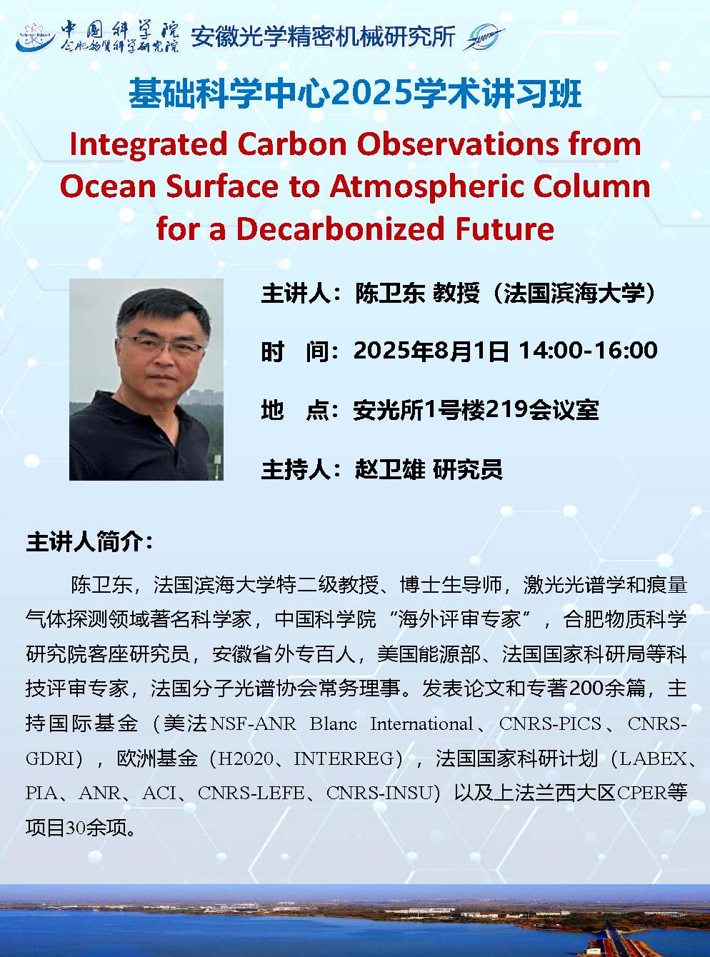 基础科学中心学术讲习班:Integrated Carbon Observations fromOcean Surface to Atmospheric columnfor a Decarbonized Future(8.1)